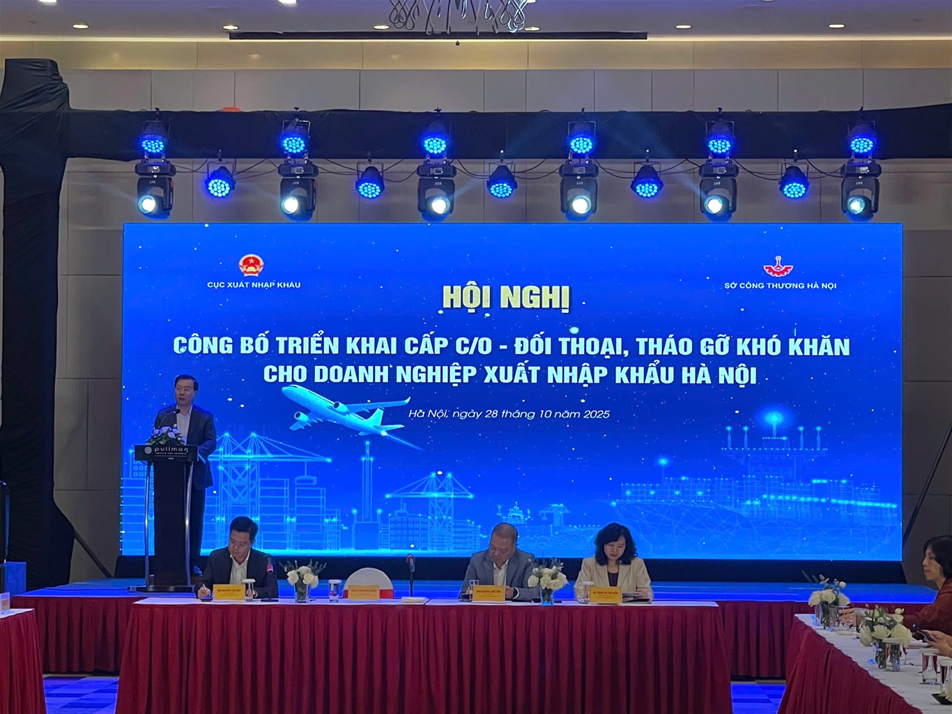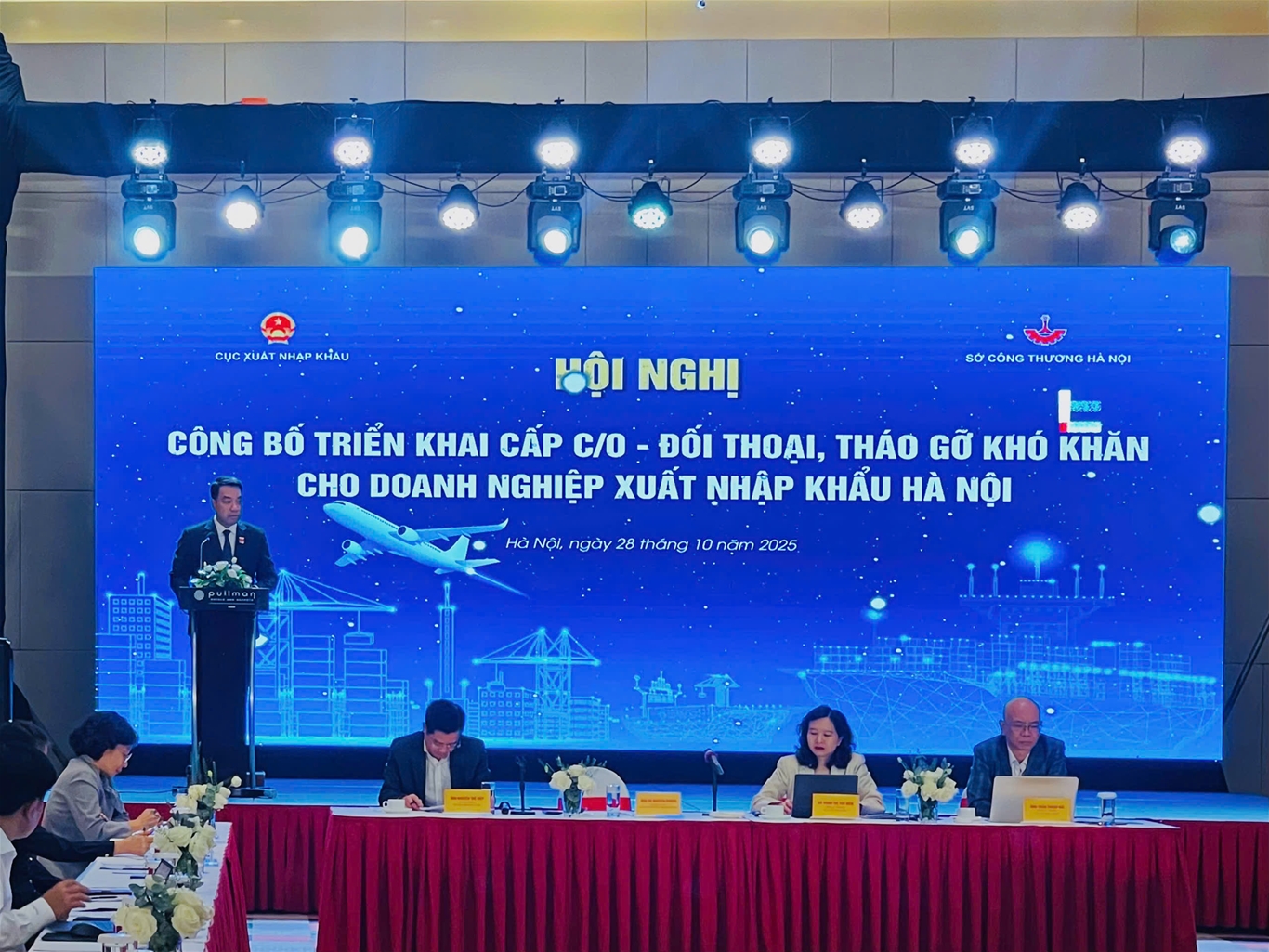 Sáng ngày 28/10/2025, tại Khách sạn Pullman Hà Nội, Sở Công Thương Hà Nội đã phối hợp cùng Cục Xuất nhập khẩu (Bộ Công Thương) tổ chức Hội nghị công bố triển khai cấp C/O - Đối thoại, tháo gỡ khó khăn cho doanh nghiệp xuất nhập khẩu Hà Nội nhằm hướng dẫn tháo gỡ khó khăn trong giải quyết thủ tục hành chính (TTHC) theo quy định phân cấp, phân quyền khi thực hiện mô hình chính quyền hai cấp, đồng thời tận dụng các Hiệp định Thương mại Tự do (FTA) để mở rộng thị trường xuất khẩu cho doanh nghiệp Thủ đô.